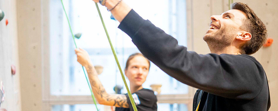 Unter Anleitung unserer Trainer/innen kannst auch du klettern - ohne Vorkenntnisse oder besondere Körperliche Voraussetzungen.